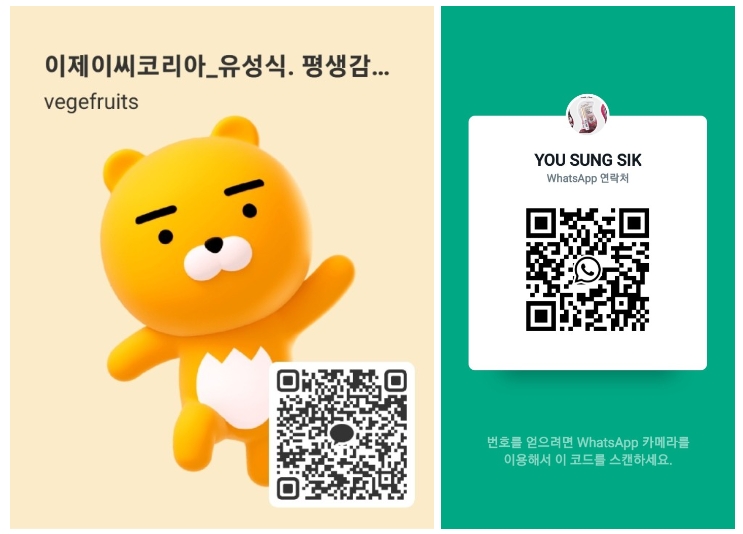 ▼▼▼ 아래는 카톡과 왓츠앱 QR코드이예요. ▼▼▼