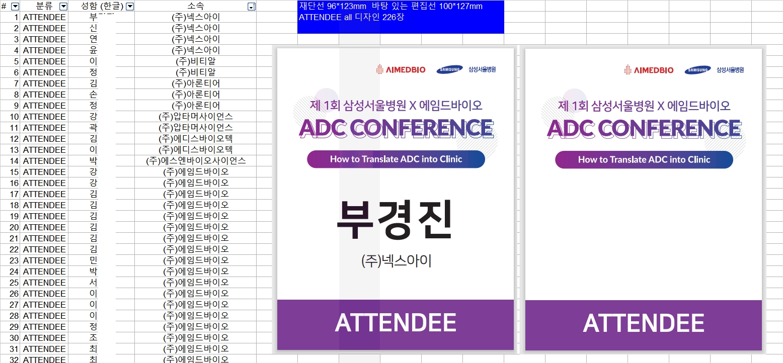 | 현재 행사 명찰 주문 제작 시 즉시 인쇄 가능한 프로그램의 화일을 주시는 조건으로 납기 안내 드려요. (1) | 2023.06.16 |