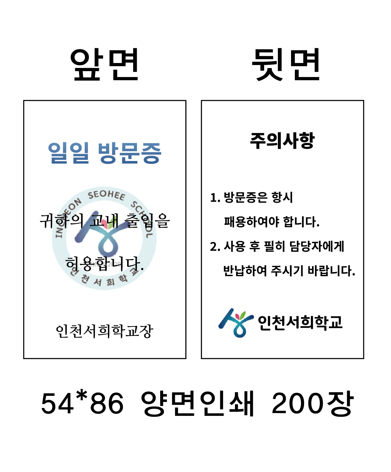 | 인천서희학교 방문증 세트 주문제작. (0) | 2023.09.21 |