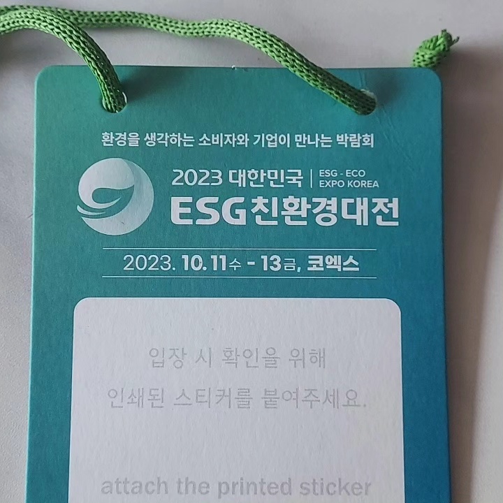 아래 수천명, 수만명을 커버해야 하는 400gsm, 800gsm (ESG 친환경대전 명찰) 페이퍼 명찰은 ---> 이름. 소속 etc 가변 사항은 행사 현장에서 스티커를 출력하여 부착OK.