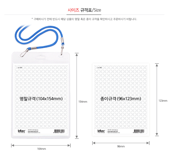 명찰 케이스에 끼우는 내지 사이즈 기준으로 말씀하여 주세요.