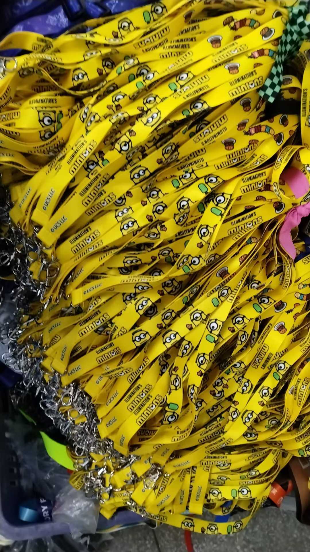 보기만 해도 기분이 좋아지는 옐로우 컬러! 바로 일루미네이션의 대표 캐릭터 미니언즈 랜야드입니다. 선명한 노란색 스트랩에 익살스러운 미니언즈 캐릭터들이 패턴으로 들어가 있어 시선을 확 사로잡습니다. 캐릭터 라이선스 굿즈나 테마파크, 팝업 스토어 행사용으로 제격인 제품입니다.