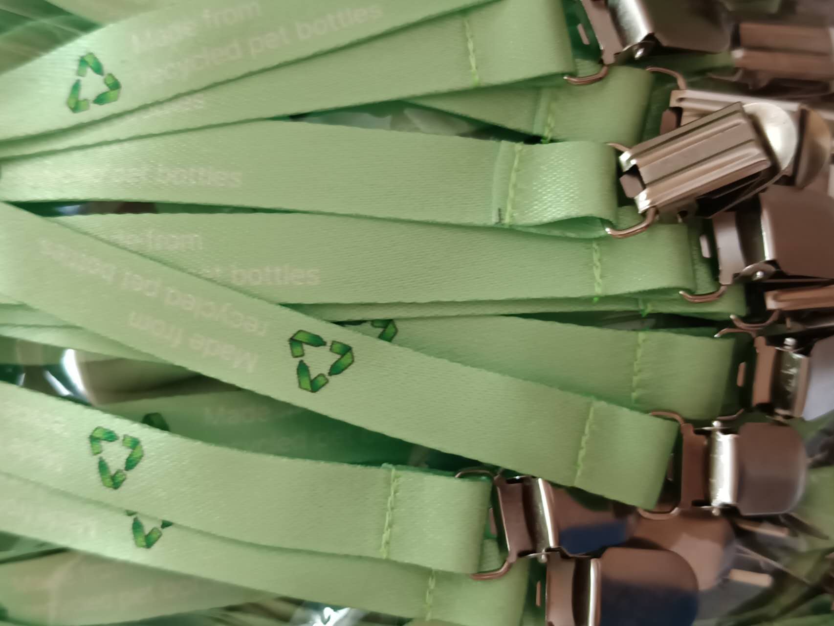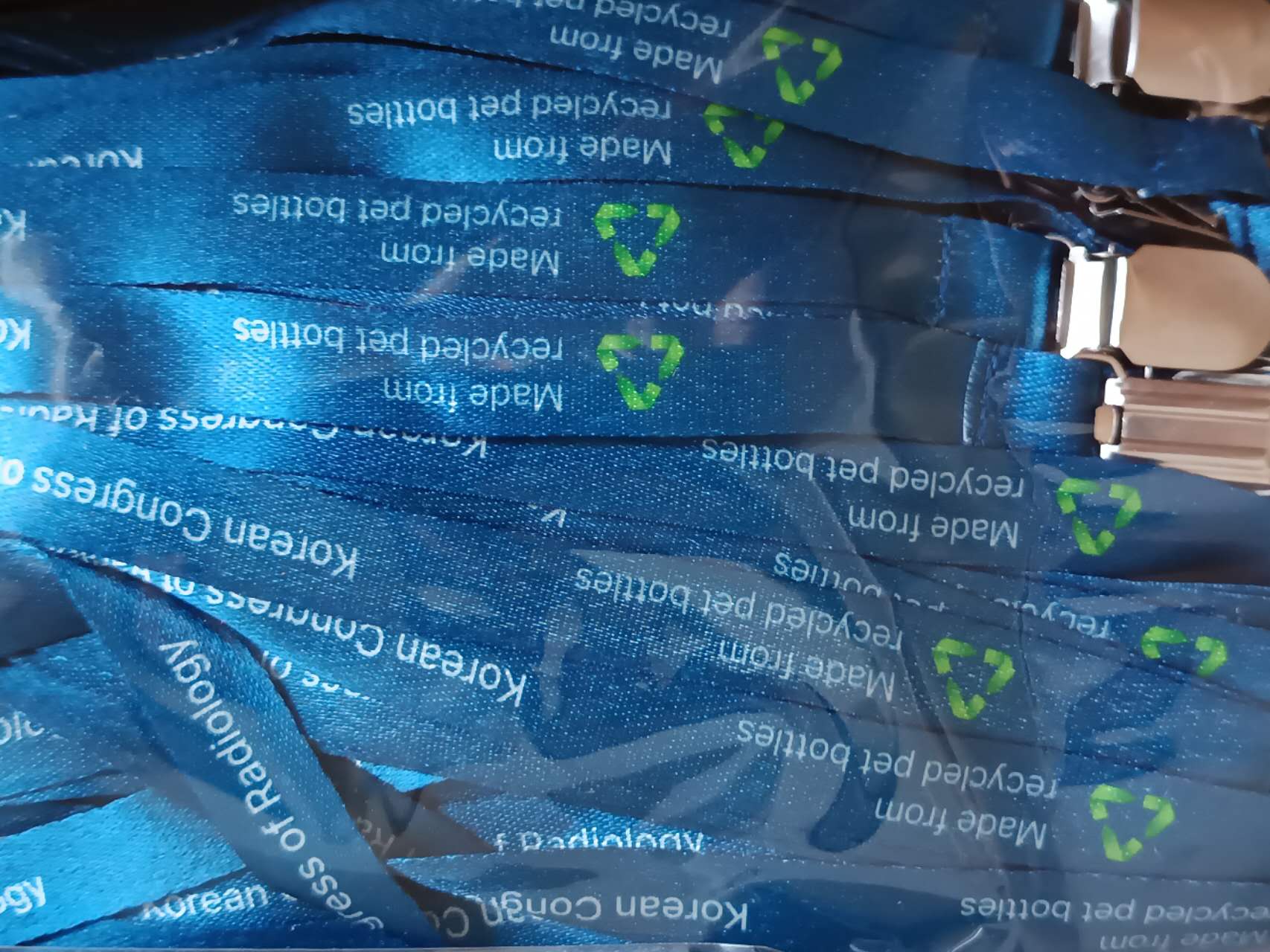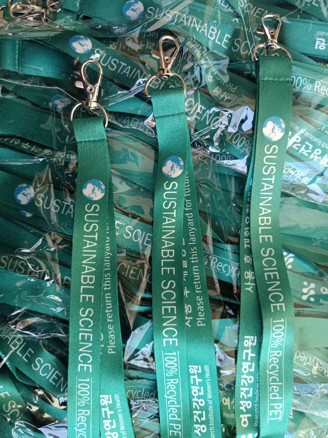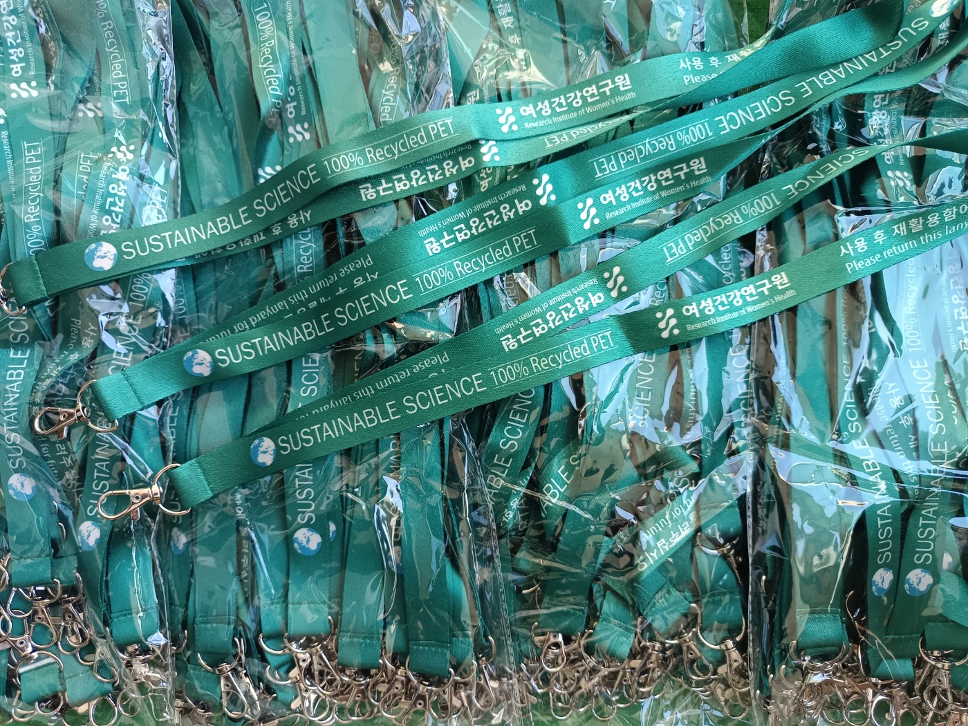- rPET 리사이클 명찰줄: 버려지는 PET병을 재활용한 소재로, 환경을 생각하는 기업 및 공공기관의 캠페인에 가장 적합한 대안입니다.